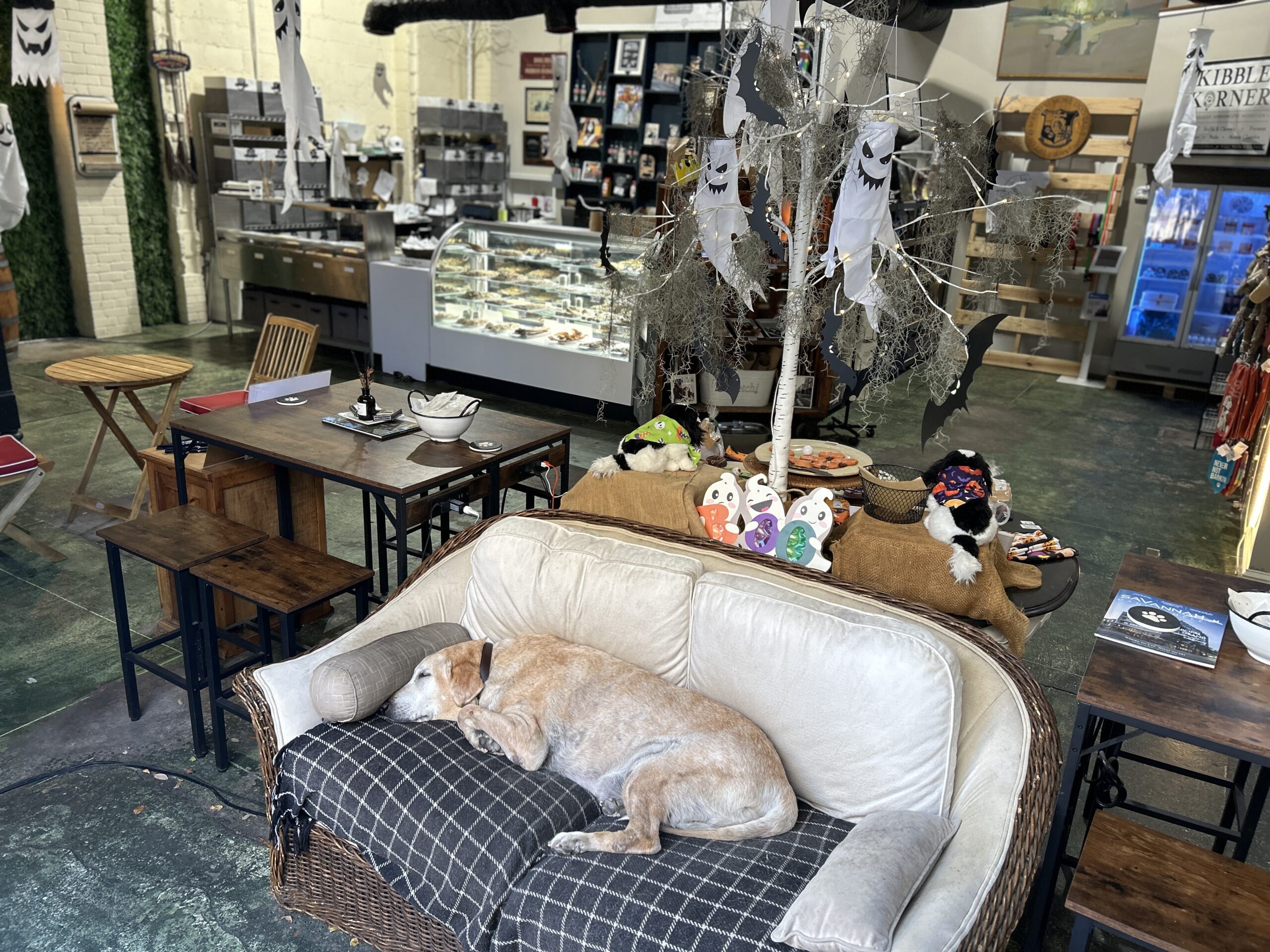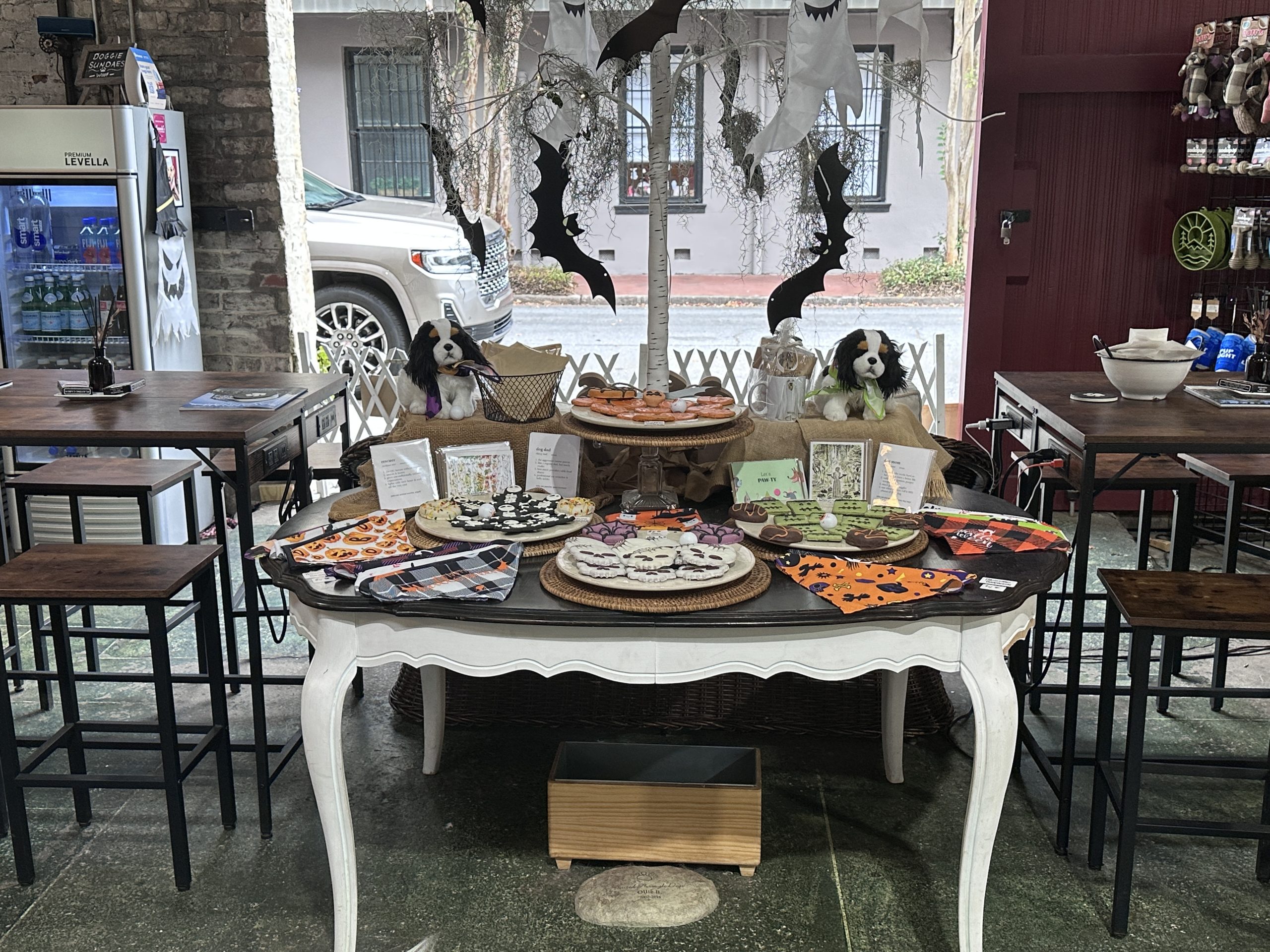 And while Oliver Bentley’s focuses on treats for dogs and relaxation for their humans, the spirit of Savannah’s pet-friendly community extends beyond its doors. During events like Wag-O-Ween 2025, visitors can even find nearby booths offering playful touches such as IV-style sangria slushes and complimentary wine for humans, adding to the festive energy around town.