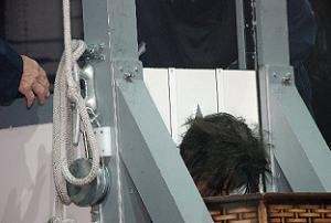 During the production of, “I Never Cry” a strapped in Rock Star, yet again a re-incarnated Alice was placed in a 5 foot box with his head out and tons of sharp spikes slammed through his body spewing liquids for effect. NICE ONE!!! I love that spewing part.
