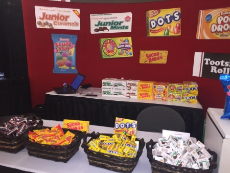 For example: The, ‘Tootsie Pop Drops,’ from Adam Warden with the Tootsie Roll Company, The Tuxedos Chocolate Covered Almonds from Libby Mauro from Promotion in Motion Inc.; and Mike Kelly showed us the yummy Dove whole cranberries and blueberries candy by the Mars